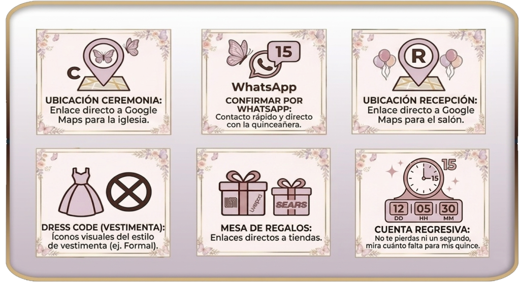 • 📩 RSVP Instantáneo: Olvídate de las llamadas; confirma asistencia directo a tu WhatsApp.